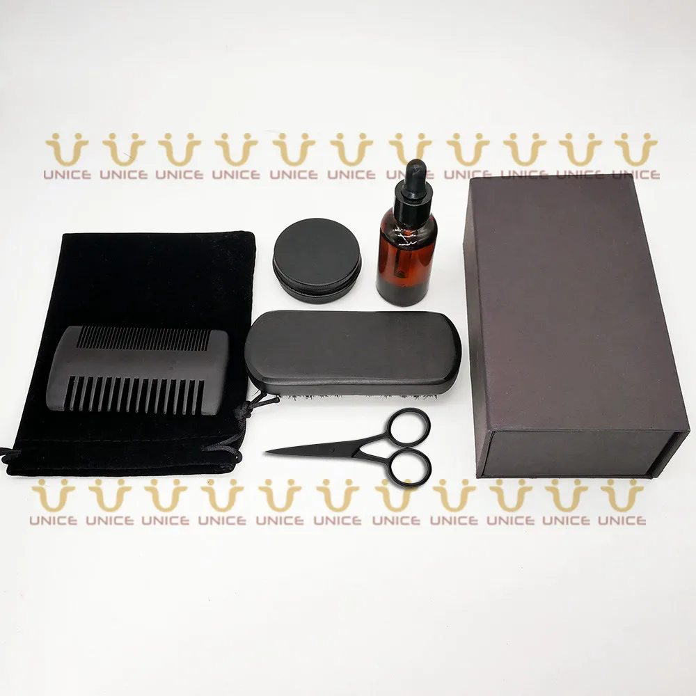 Best . (0% Off) Buy MOQ 100pcs 7 In 1 OEM ODM Custom LOGO Amazon Hot Sale Black Beard Kit Beard Brush Beard Comb Beard Oil Balm Scissors In Gift Box Cheap Online.
