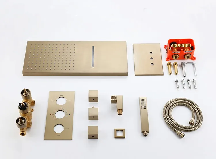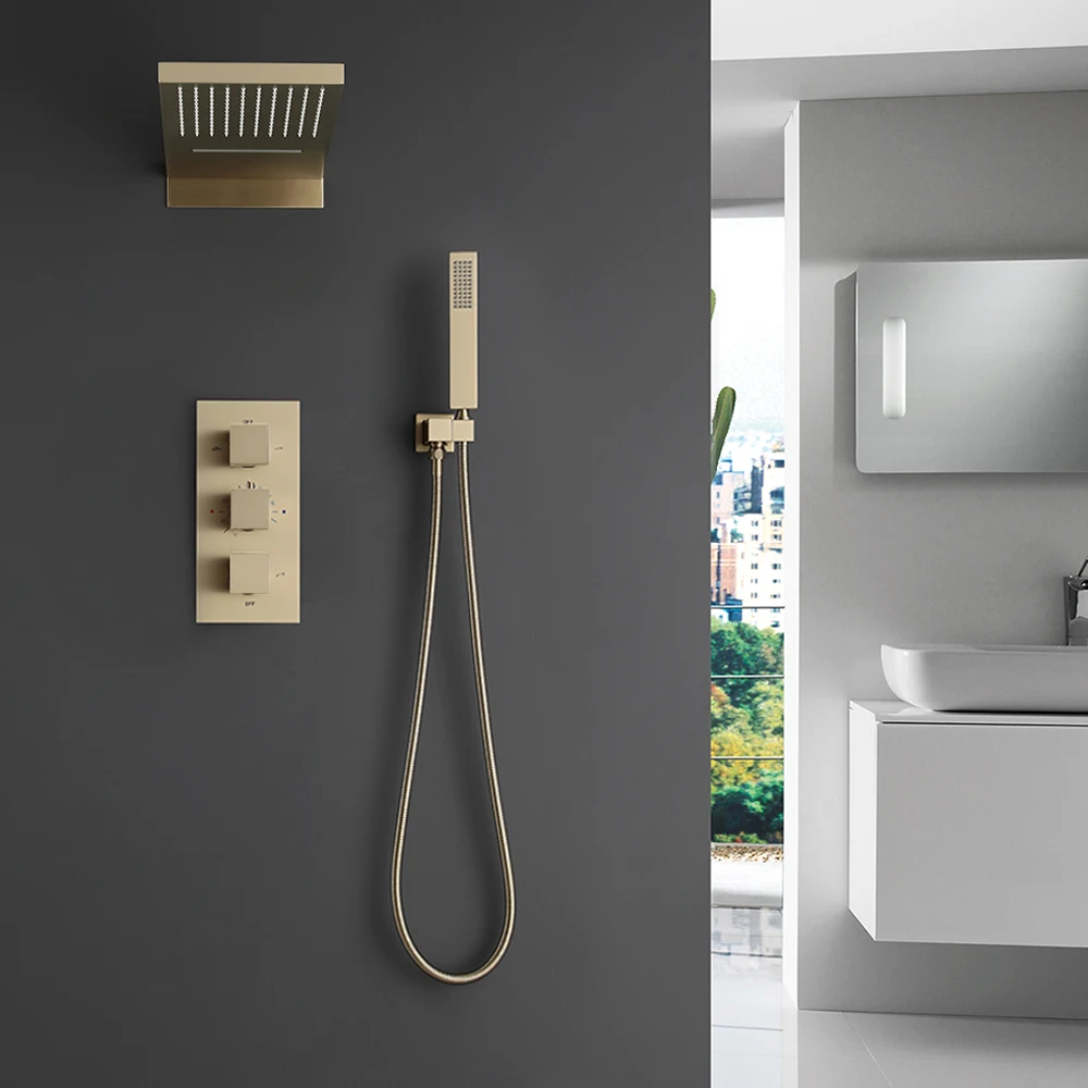 Product Name: Luxury Brushed Gold Brass Shower Mixer Faucet Bathroom Thermostatic Three Functions Shower Faucet Set